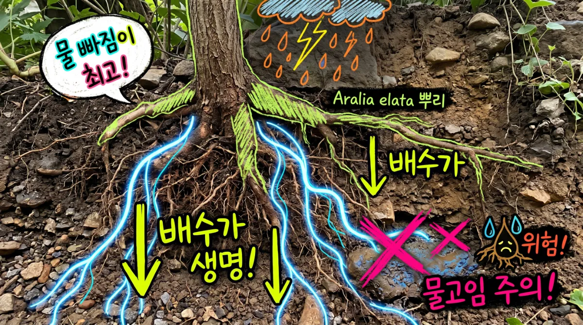 엄나무는 침수에 매우 약한 작물입니다. 배수가 불량한 토양에서는 뿌리 부패가 발생하기 쉬우므로, 논을 밭으로 전환하여 사용할 경우에는 높은 두둑을 조성하고 배수로를 철저히 정비해야 합니다.