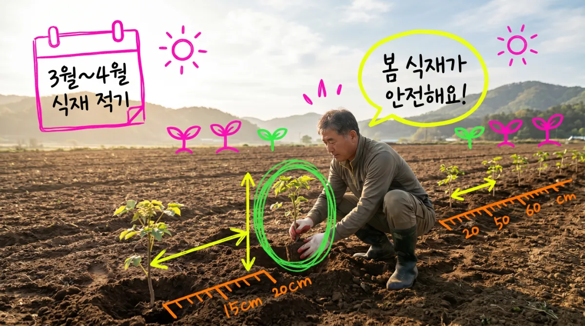 나무의 활동이 시작되기 전인 3월 초순부터 4월 초순 사이가 가장 적절합니다. 가을에 심는 것도 가능하지만, 추운 지역에서는 겨울철 동해 피해를 방지하기 위해 가급적 봄 식재를 권장합니다.