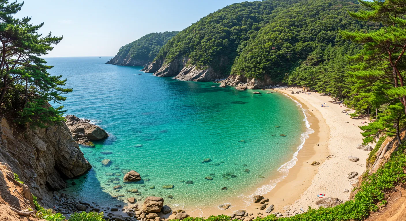 동해안 하면 경포대, 속초만 떠올리셨다면 큰 오산입니다. 강원도 고성에 위치한 자작도 해수욕장은 아는 사람만 찾아가는 시크릿 비치입니다. 규모는 작지만, 투명한 에메랄드빛 바다와 기암괴석이 어우러진 풍경이 마치 해외 휴양지에 온 듯한 착각을 불러일으킵니다. 수심이 얕고 파도가 잔잔해 아이들과 함께 물놀이를 즐기기에도 안성맞춤이죠.