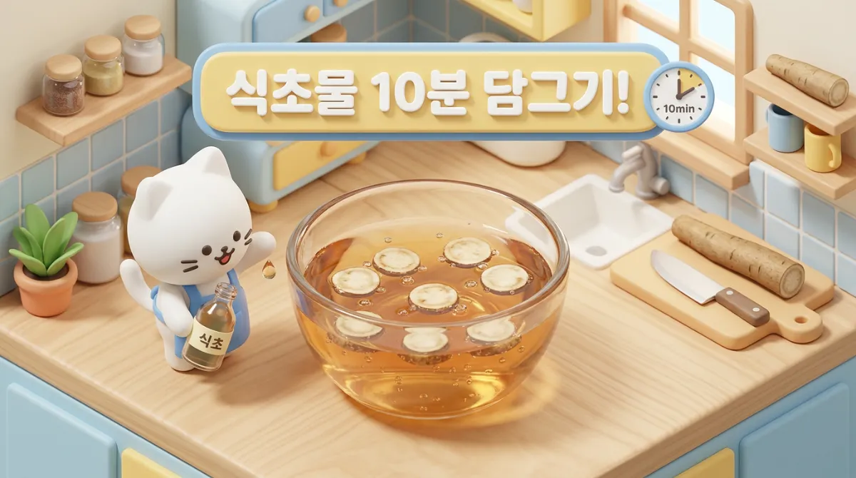 ☑️ 포인트 1: 식초물 10분은 쓴맛 제거의 필수 과정