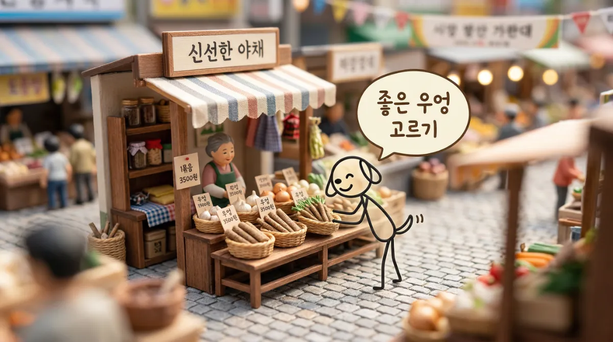 맛있는 우엉차의 첫걸음은 역시 좋은 재료를 고르는 것부터 시작해요. 마트나 시장에 가시면 너무 굵거나 가느다란 것보다는, 동전 500원짜리 정도의 굵기에 잔뿌리가 없고 매끈한 우엉을 선택하세요. 껍질에 흙이 적당히 묻어있고, 만졌을 때 단단한 것이 신선한 우엉이랍니다.