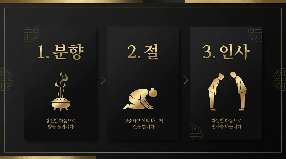 인사말 못지않게 중요한 게 조문 절차입니다. 처음이라면 아래 순서를 한 번 읽어두면 당황하지 않을 수 있어요.