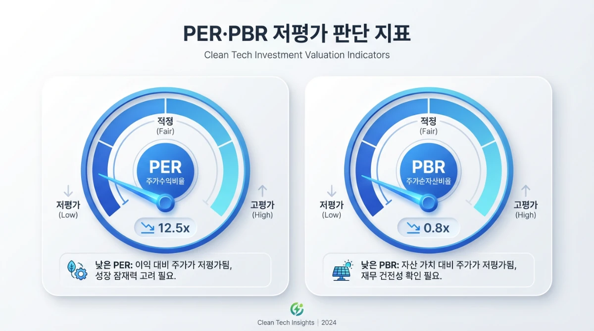 - PER (주가수익비율): 주가가 1주당 순이익의 몇 배인지 지표. 낮을수록 저평가 가능성.