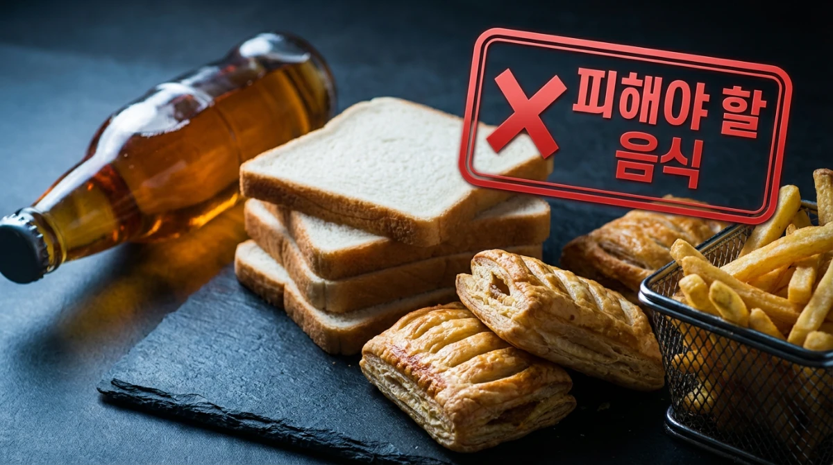 ✅ 단당류, 정제 탄수화물, 트랜스/포화 지방, 알코올 섭취를 제한하세요.