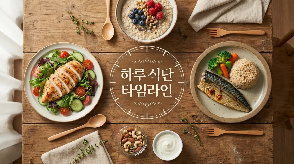 | 아침 | 오트밀 (견과류, 베리류 토핑) + 저지방 우유 | 섬유질, 오메가-3, 항산화 성분 섭취 |