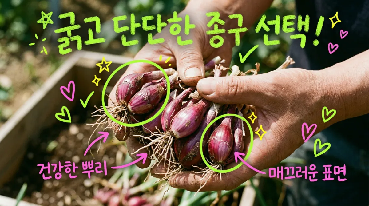 - 심는 깊이: 종구가 2/3 정도 흙에 묻히게 꾹 눌러주세요. 너무 깊으면 싹이 늦고, 얕으면 말라요.