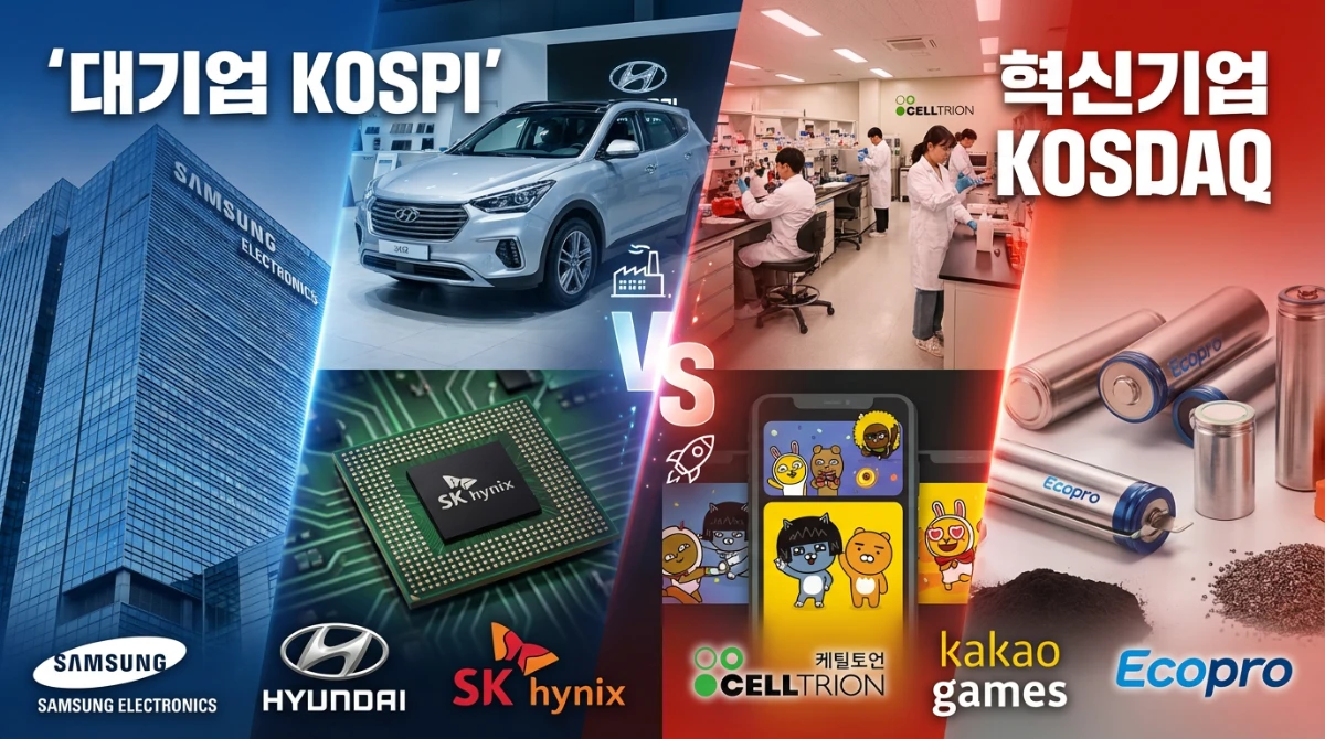 | 대표 기업 예시 | 삼성전자, 현대차, SK하이닉스 | 셀트리온, 카카오게임즈, 에코프로 |
