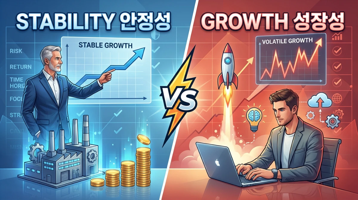 | 투자 성향 | 안정성 추구, 장기 배당 | 고위험-고수익, 성장주, 단기 차익 |