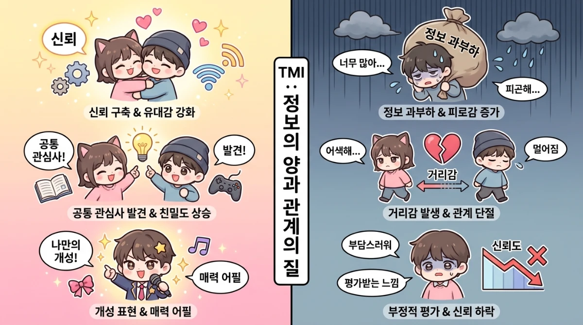 결국 TMI는 적절히 활용하면 관계를 풍요롭게 하지만, 과하면 오히려 독이 될 수 있다는 점을 항상 기억해야 합니다.