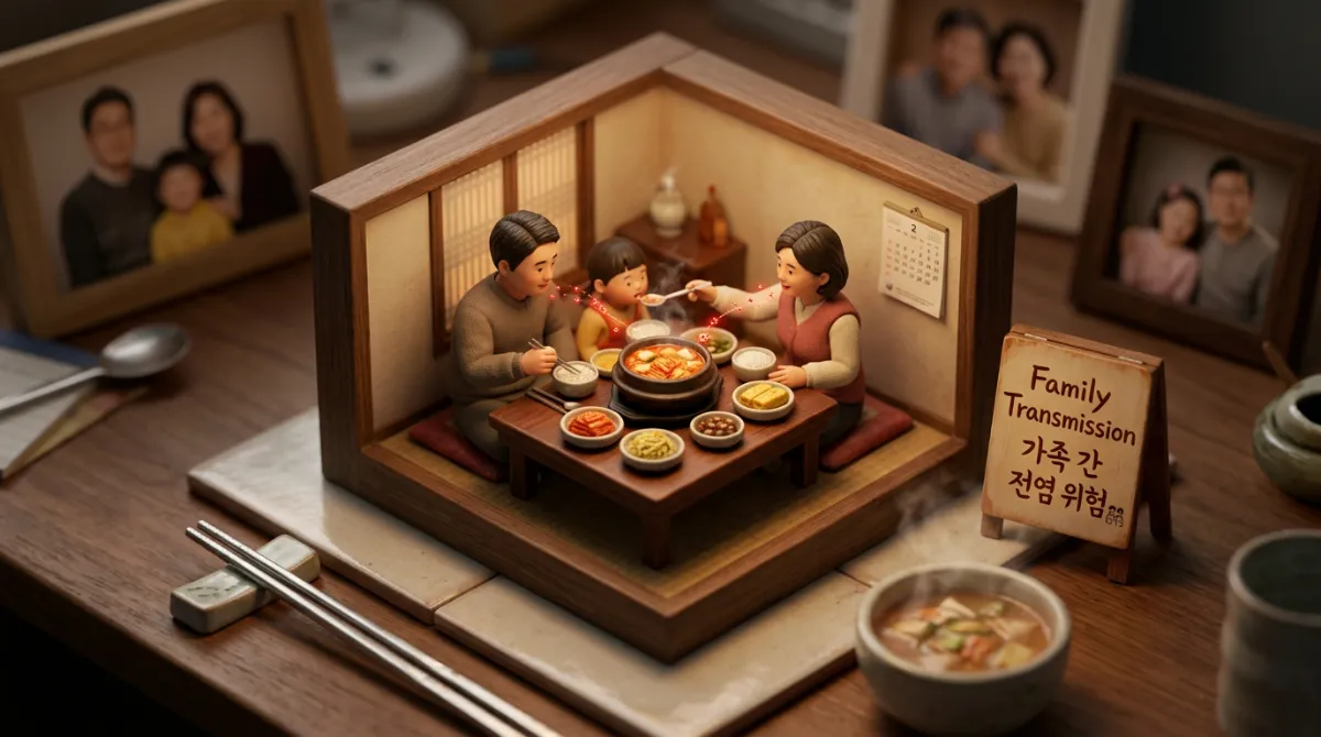 특히 한국처럼 찌개나 국을 함께 떠먹는 식문화가 발달한 경우 가족 간 전염 가능성이 매우 큽니다.