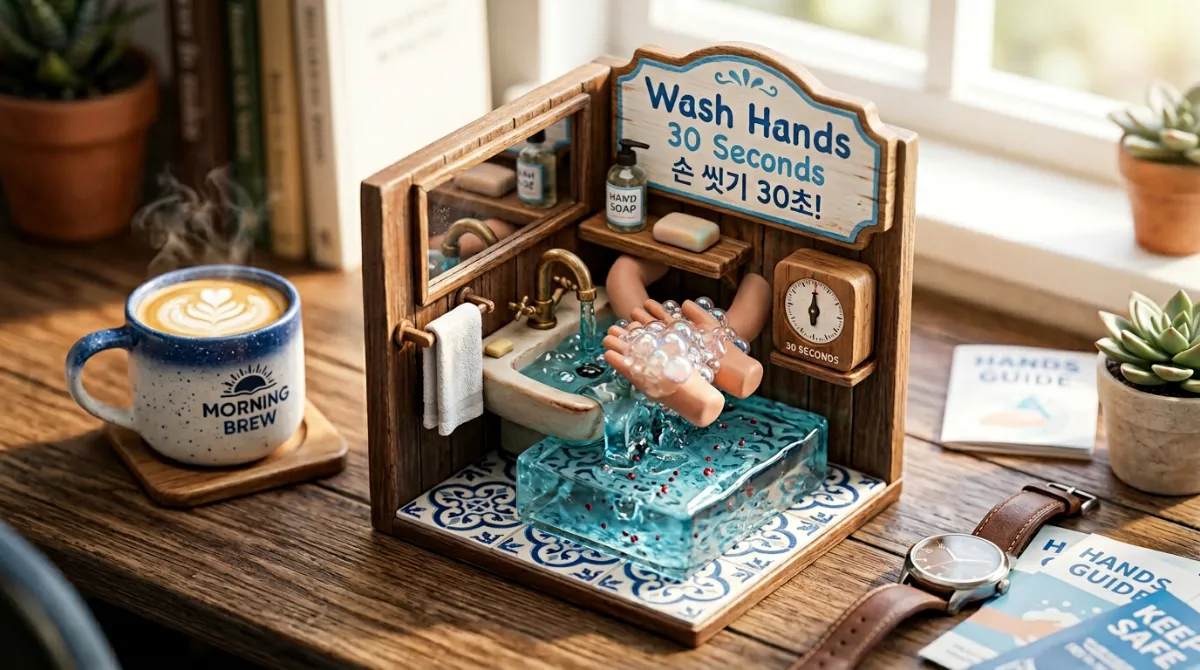 외출 후와 식사 전에는 반드시 흐르는 물에 30초 이상 손을 씻어야 합니다. 특히 아이가 있는 집이라면 부모님의 위생 관리가 무엇보다 중요합니다.