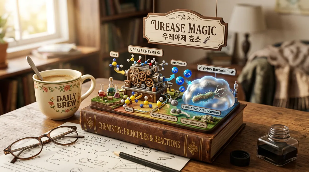 이 균은 '우레아제'라는 효소를 분비하여 주위의 요소를 암모니아로 중화시킵니다.