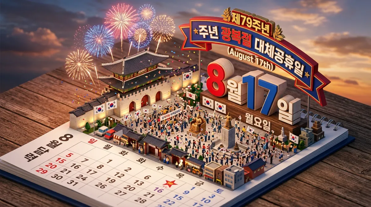 ③ 8월 17일(월) — 광복절 대체공휴일: 광복절(8월 15일)이 토요일이고, 8월 16일이 일요일이라 그다음 평일인 월요일이 대체공휴일이 됩니다. 토요일~월요일 3일 연휴예요.