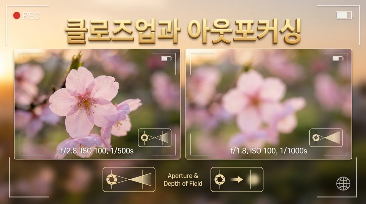 - 클로즈업과 아웃포커싱: 활짝 핀 꽃 한 송이를 클로즈업하고 배경을 흐리게 처리하면 감성적인 사진을 얻을 수 있어요.