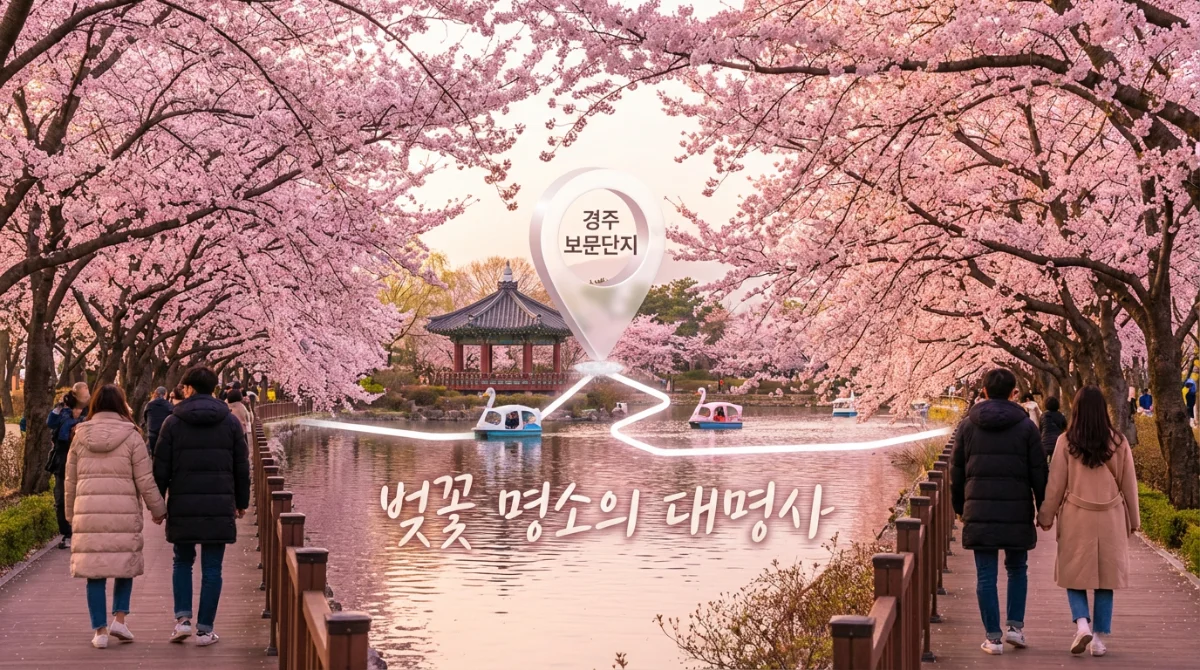 맑은 보문호수를 따라 늘어선 벚꽃길은 낮에는 화사하고 밤에는 조명과 어우러져 환상적인 야경을 선사해요. 보문호반길을 걷거나 오리배를 타면서 벚꽃을 배경으로 로맨틱한 사진을 남겨보세요. 특히 보문정의 운치 있는 풍경은 벚꽃과 함께 한국적인 미를 담아내기에 최고입니다.