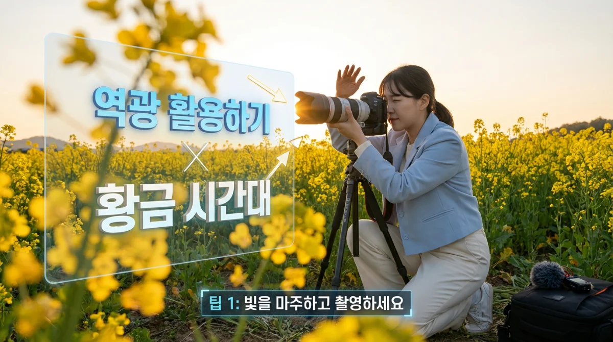 아름다운 봄꽃 여행지에서 평생 간직할 인생샷을 남기고 싶다면 몇 가지 촬영 팁을 기억해두세요.