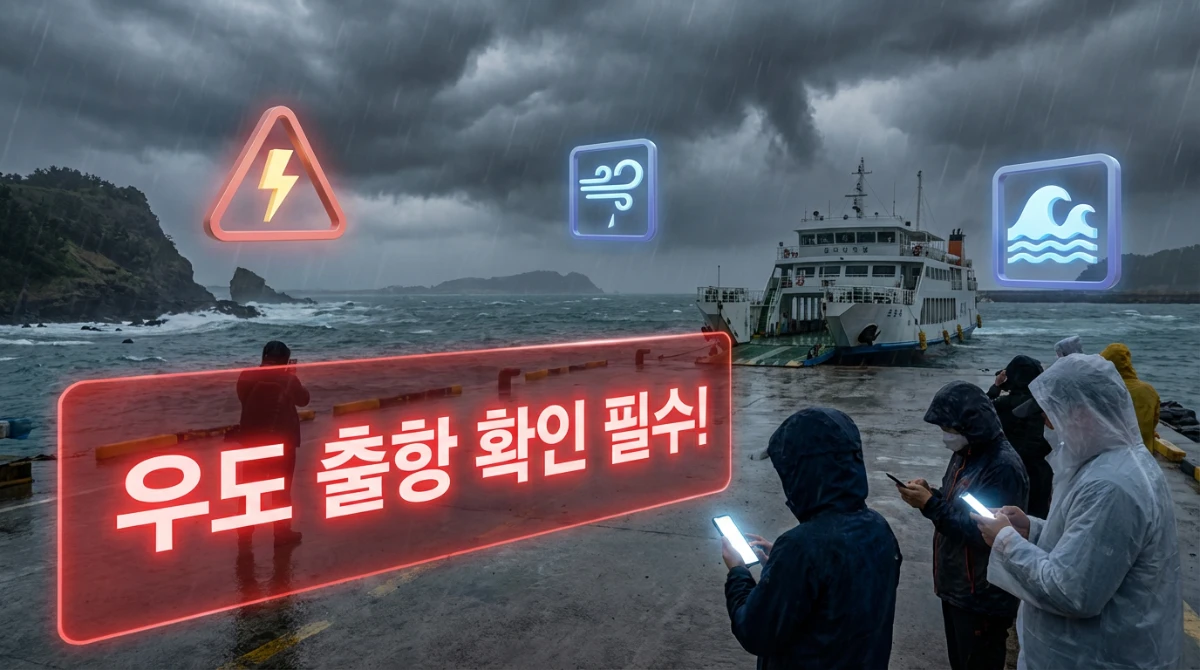 우도를 방문할 때는 당일 기상 악화나 풍랑주의보로 인해 배가 뜨지 않을 수도 있어요. 아침에 숙소를 나서기 전 성산항 여객터미널에 출항 여부를 꼭 전화로 확인하고 출발하시는 것을 강력히 권장합니다!