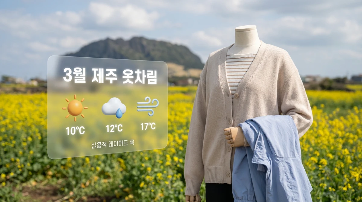 봄철 제주의 날씨는 꽤 변덕스러운 편이에요. 유채꽃 명소들은 대부분 야외에 탁 트여 있어 바람이 많이 불 수 있으니, 사진 찍을 때 머리가 날리지 않게 모자나 예쁜 헤어밴드를 챙겨가시면 훨씬 예쁜 인생샷을 건질 수 있어요!