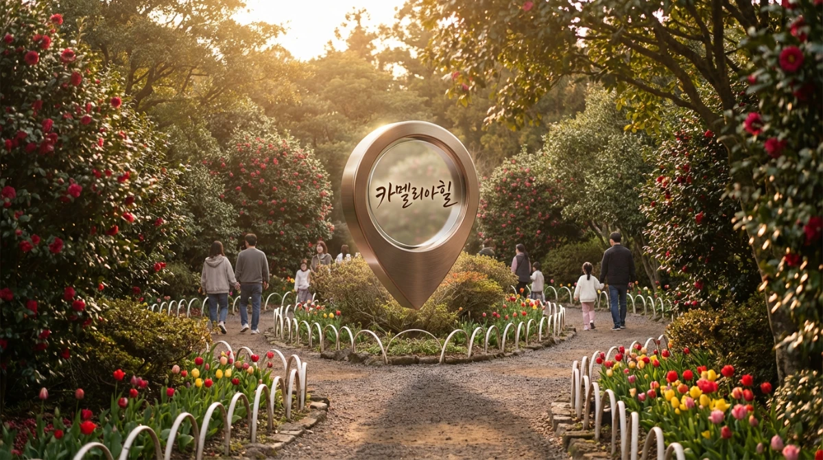 카멜리아힐에는 늦게까지 피는 늦동백과 함께 튤립, 벚꽃 등 다채로운 봄꽃들이 고개를 내밀기 시작해요. 산책로가 평탄하게 잘 조성되어 있어서 맑은 공기를 마시며 여유롭게 거닐기 딱 좋은 곳이랍니다.