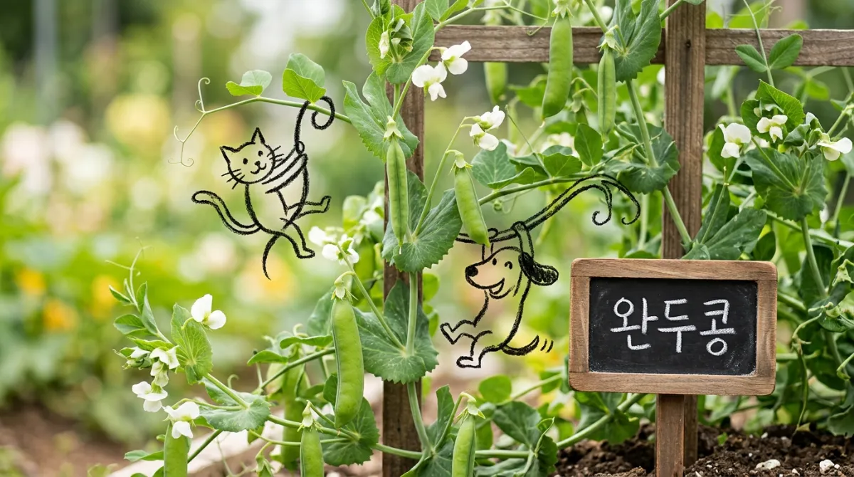 완두콩은 덩굴을 뻗으며 자라기 때문에 지지대를 세워주는 것이 필수입니다. 하얀 꽃이 피고 나서 꼬투리가 맺히는 과정을 지켜보는 것도 큰 즐거움이죠. 밥에 넣어 먹으면 고소한 맛이 일품인 완두콩은 아이들과 함께 키우기에도 정말 좋은 작물입니다.