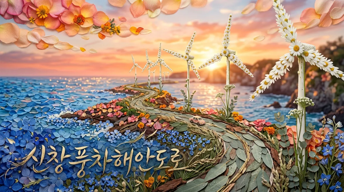마지막 추천 장소는 거대한 풍력 발전기가 이국적인 분위기를 연출하는 신창 풍차해안도로입니다. 푸른 바다 위로 우뚝 솟은 하얀 풍차들은 마치 영화 속 한 장면 같아요.
