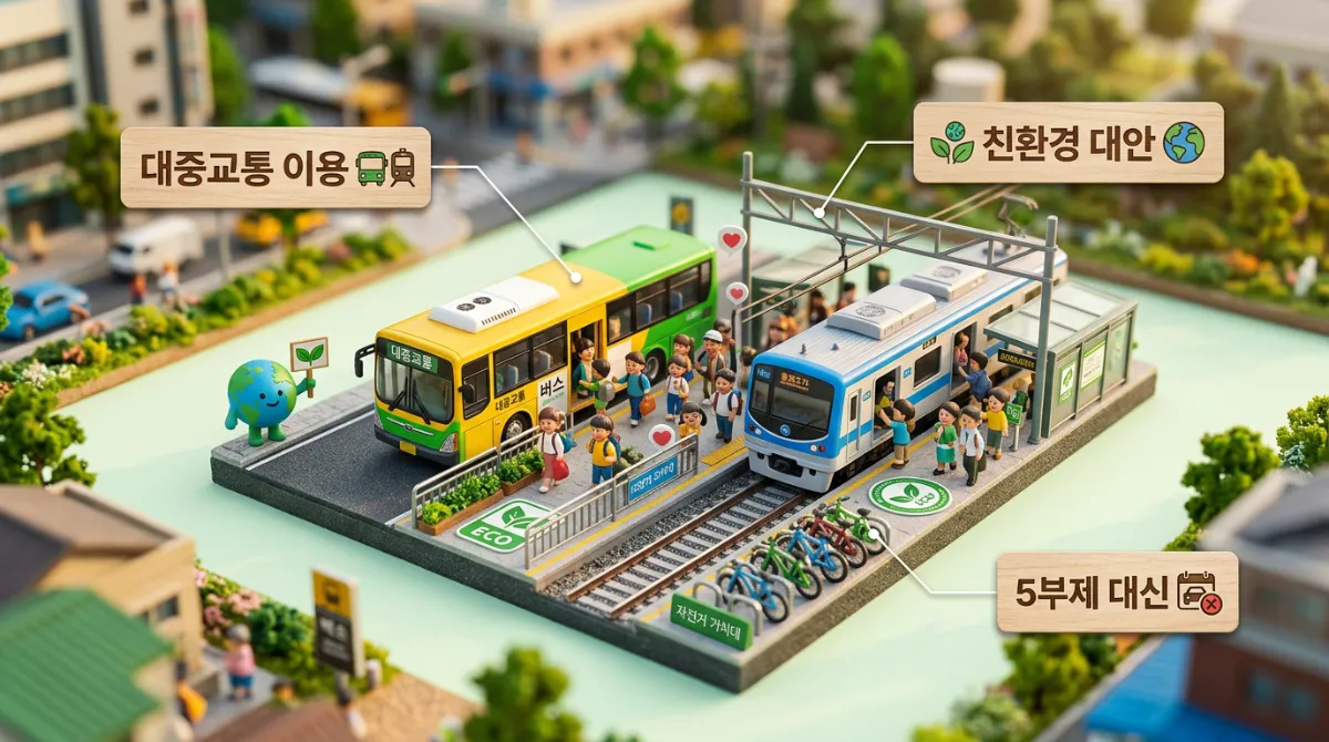 원래 10부제로 운영되던 것이 효율성을 높이기 위해 5부제로 통합되었습니다. 평일인 월요일부터 금요일까지 하루에 전체 차량의 약 20%씩 운행을 줄이는 방식이죠. 주말과 공휴일에는 적용되지 않으므로 안심하셔도 됩니다.