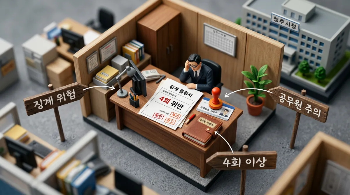 공공부문 종사자가 5부제를 반복적으로 위반할 경우 단순 계도를 넘어 징계 대상이 될 수 있습니다. 최근 지침에 따르면 1회 위반 시 경고, 4회 이상 상습 위반 시 기관장에게 징계 요청을 하도록 명시되어 있습니다.