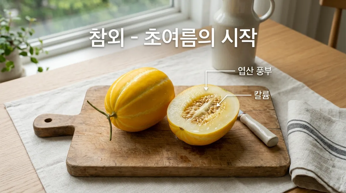 | 🍈 참외 | 5월~8월 | 엽산, 비타민 C, 칼륨 | 임산부 건강·이뇨·해독 |