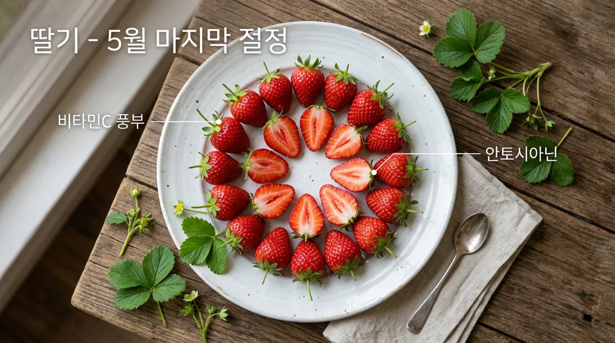 | 🍓 딸기 | 12월~5월 | 비타민 C, 안토시아닌, 엽산 | 면역력·피부 미용·항산화 |