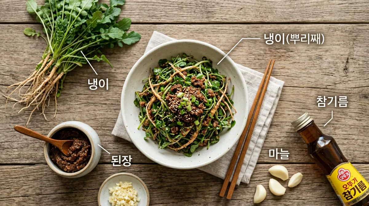 | 냉이 된장 무침 | 나물 | ⭐ | 저렴 | 2~3일 | 빈혈·철분 보충 필요한 분 |