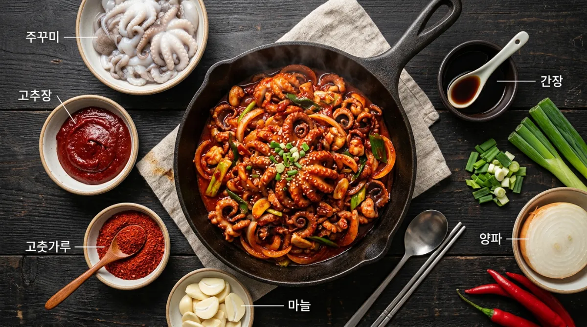 - ✔ 조리법 — 고추장·고춧가루·마늘·간장 양념에 센 불 볶음