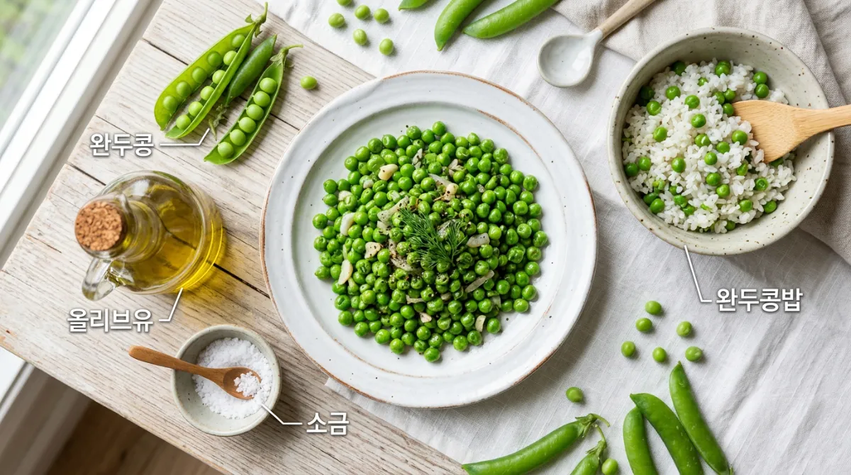 | 완두콩 볶음 | 나물 | ⭐ | 저렴 | 4~5일 | 아이 있는 가정, 간편 반찬 |