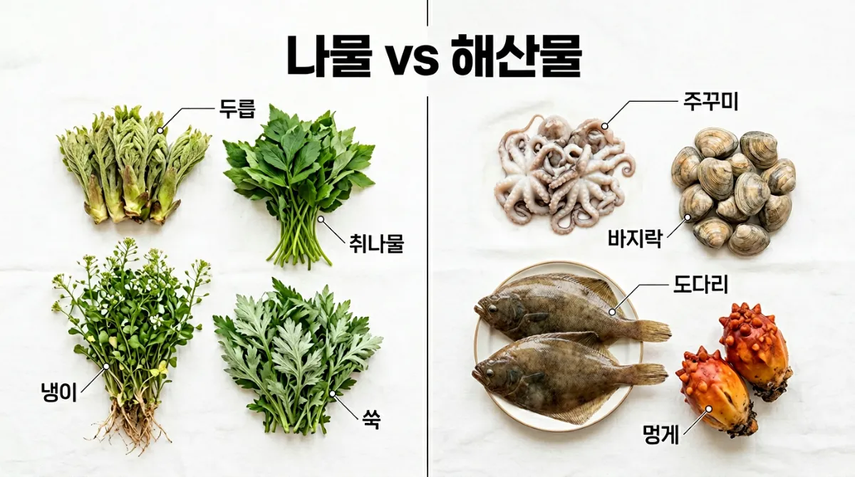 5월 제철 반찬은 크게 봄나물류와 해산물류로 나뉩니다. 어떤 쪽이 내 밥상에 더 필요한지, 먼저 특징을 비교해보세요.