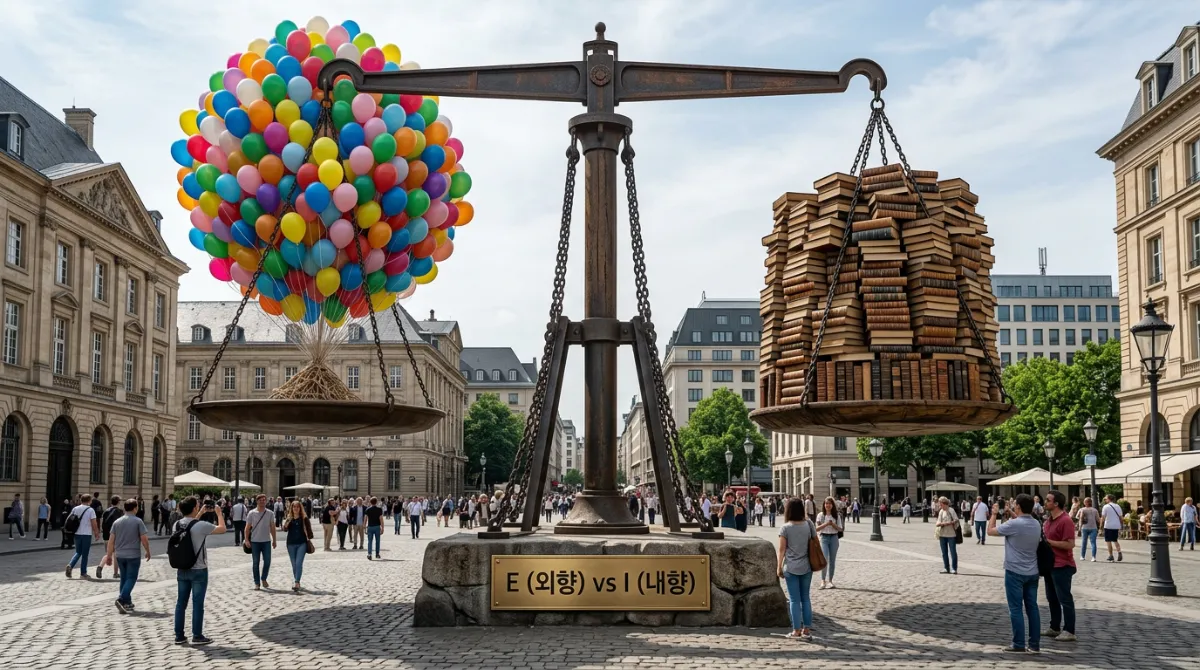 | 에너지 방향 | E (외향): 외부 활동을 통해 충전 | I (내향): 혼자만의 시간을 통해 충전 |