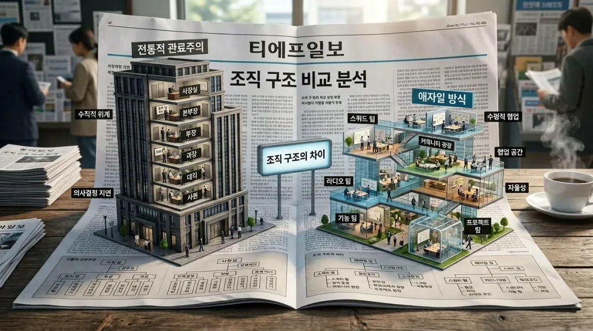 | 의사결정 | 수직적 (단계별 보고 라인) | 수평적, 경영진 직속 (빠른 결정) |